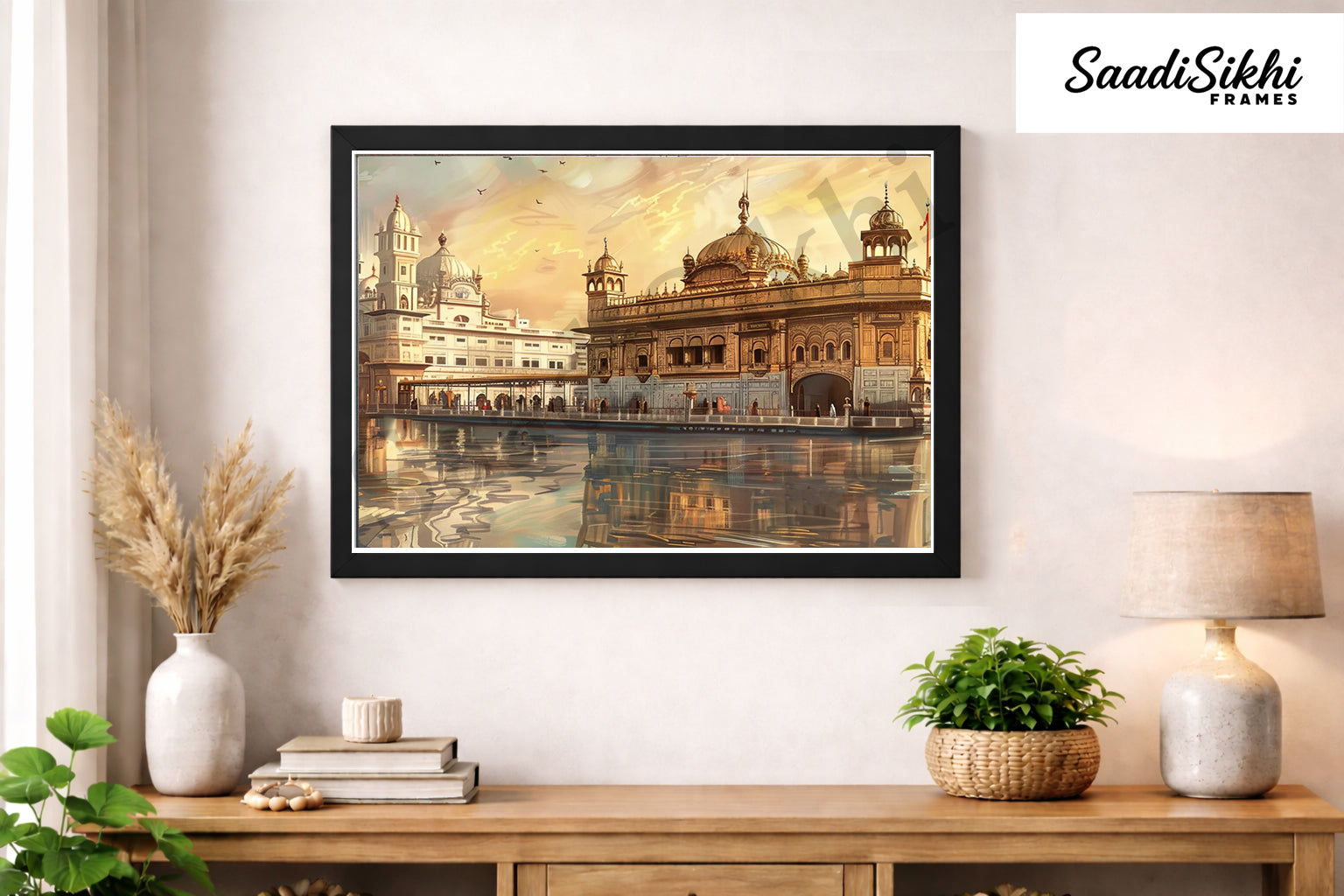 Golden Temple Sikh Art Print: Darbar Sahib Painting:-Digital Wall Art I Wall Frame I with Self Adhesive Hook (GT-009)