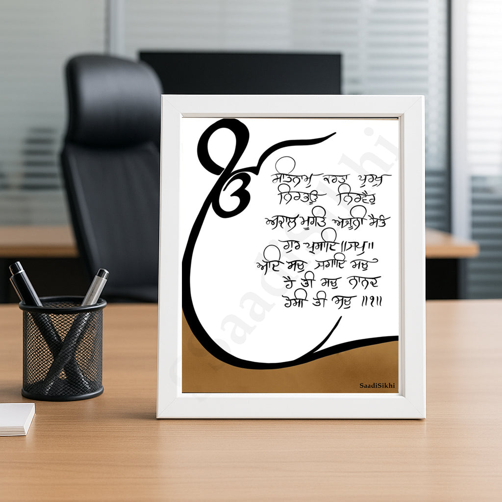SaadiSikhi Handwritten Sikh Mool Mantar I Japji Sahib Gurbani I Sikh Prayer In Punjabi I Punjabi Religious Home Decor I Minimalistic Wall Art Frame I with Self Adhesive Hook (SM-707)