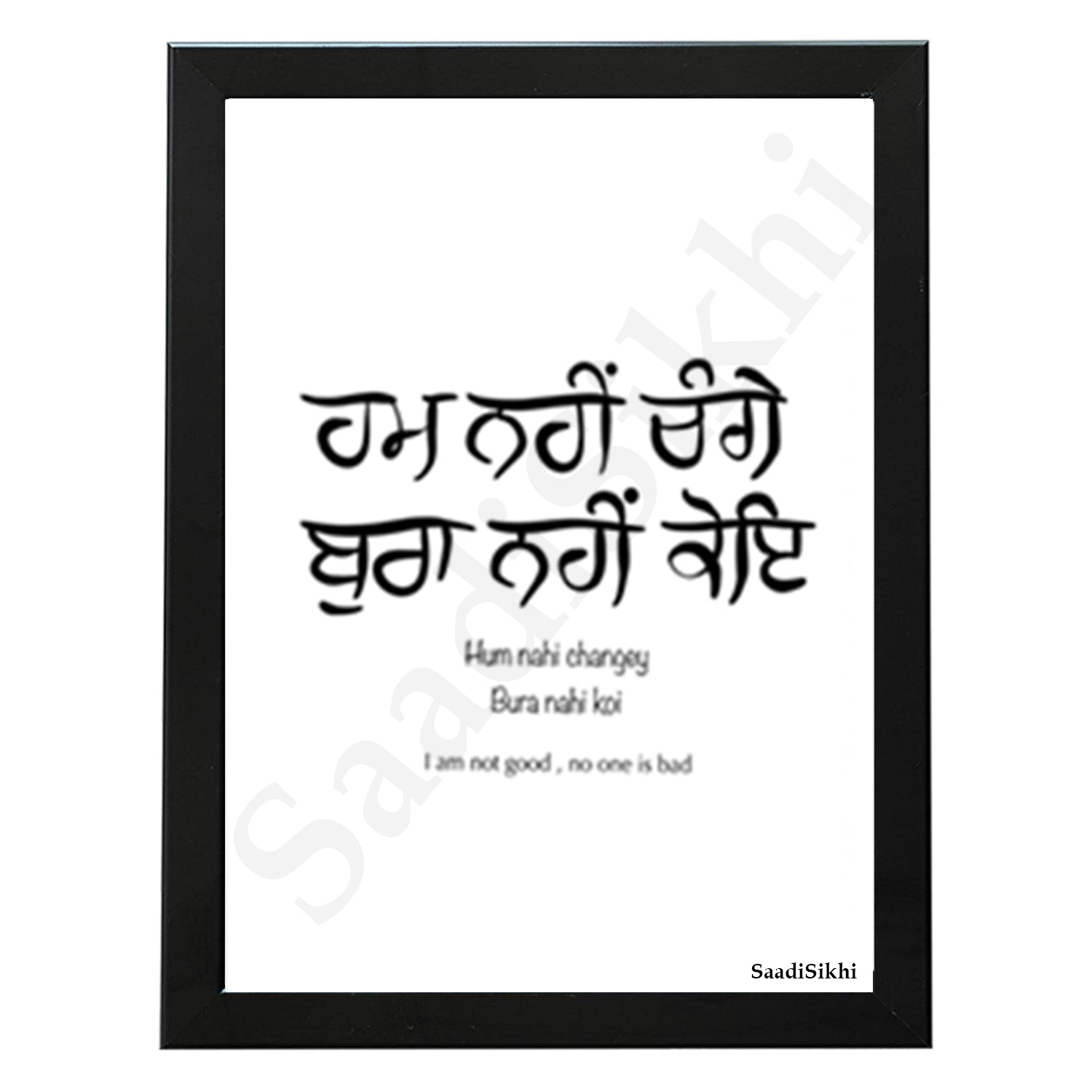 SaadiSikhi I Hum Nahi Changey Bura Nahi Koi Handwritten Punjabi Gurbani Quote Poster Print | Gurmukhi calligraphy | Sikh Religious Wall Art | Sikh Home Decor I Indian Home Decor I Wall Art Frame I with Self Adhesive Hook