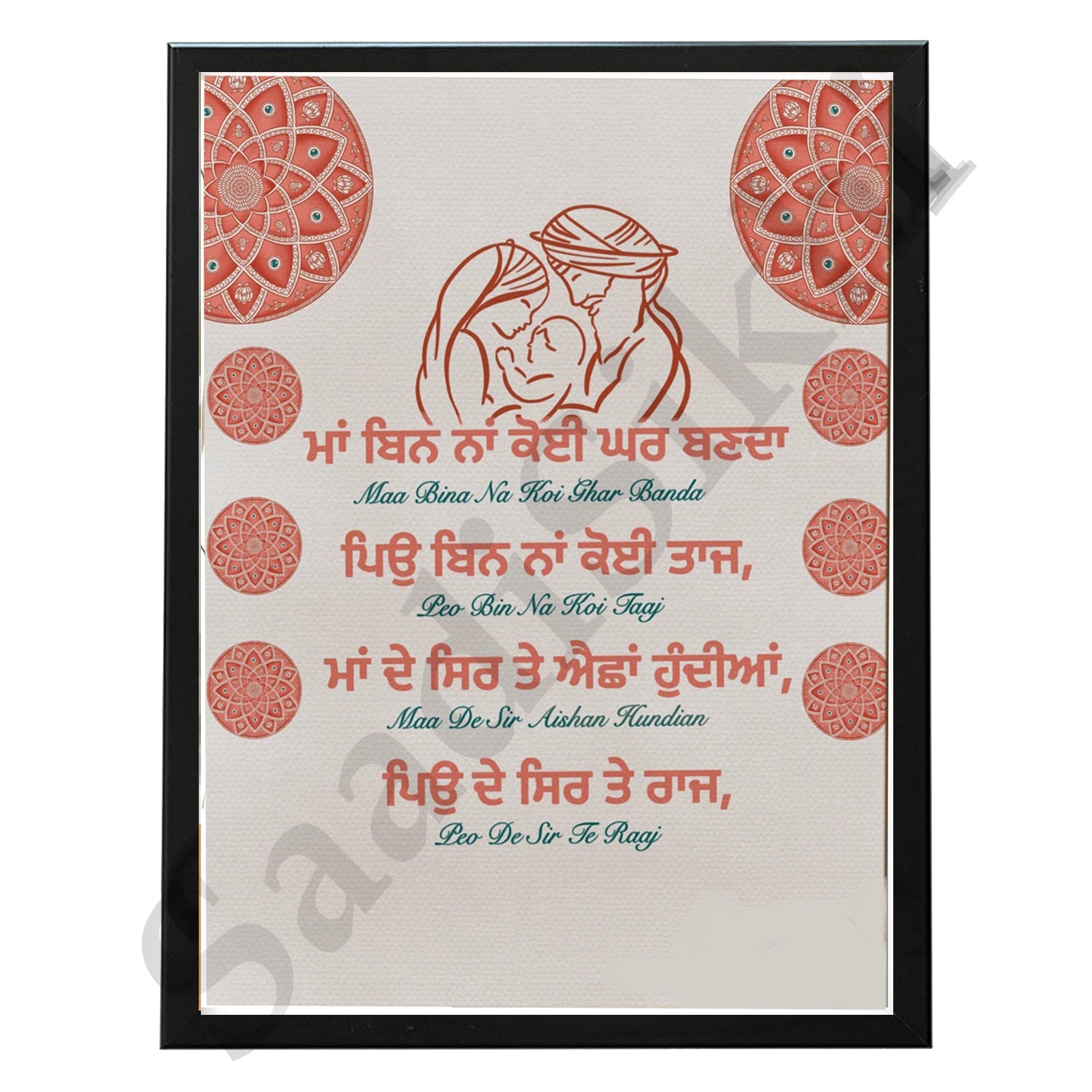 SaadiSikhi I "Maa Bin" - Wall Decor Prints For Home , Housewarming Gifts, Sikh Quotes I Sikh Gift Ideas I Premium Office Desk / Study Desk / Side Tables and Wall Gurbani Art Wall Frames I with Self Adhesive Hook