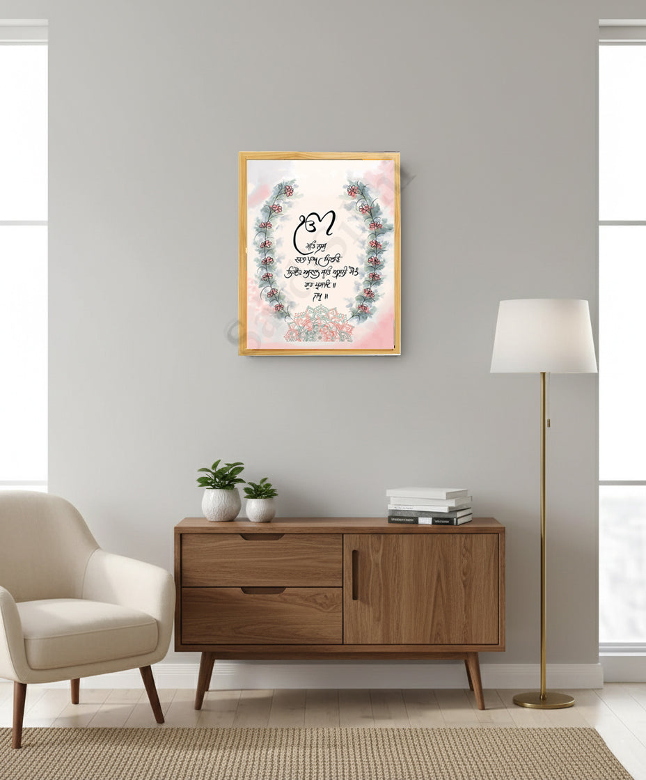 SaadiSikhi I "Mool Mantar" - Wall Decor Prints For Home , Housewarming Gifts, Sikh Quotes I Sikh Gift Ideas I Premium Office Desk / Study Desk / Side Tables and Wall Gurbani Art Wall Frames I with Self Adhesive Hook