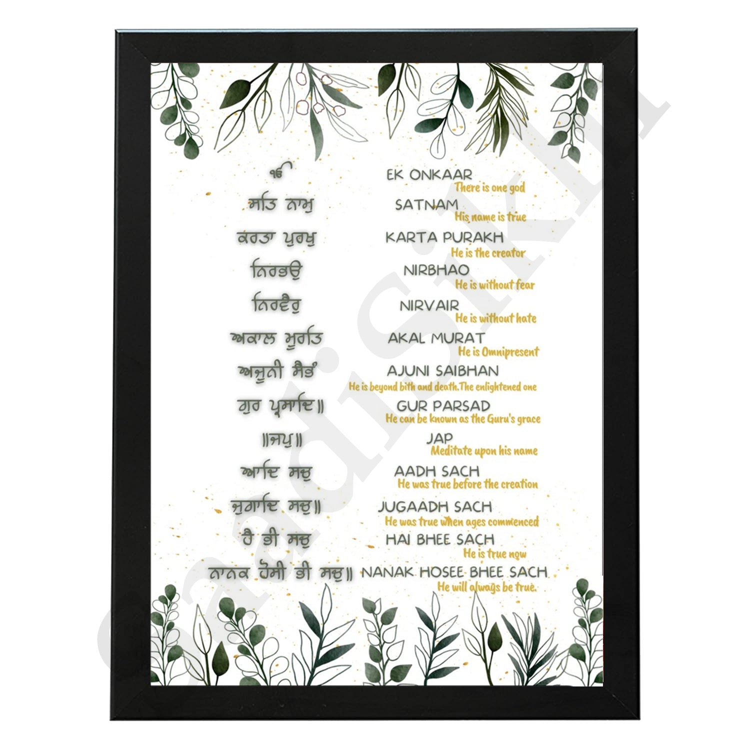 SaadiSikhi I "MOOL MANTAR" - Wall Decor Prints For Home , Housewarming Gifts, Sikh Quotes I Sikh Gift Ideas I Premium Office Desk / Study Desk / Side Tables and Wall Gurbani Art Wall Frames I with Self Adhesive Hook