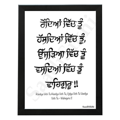 SaadiSikhi I Rondya Vich Tu Hansdaya Vich Tu Punjabi Gurbani Quote Poster Print | Handwritten Gurmukhi calligraphy | Sikh Home Decor Religious Wall Art I Minimalistic Wall Art Frame I with Self Adhesive Hook