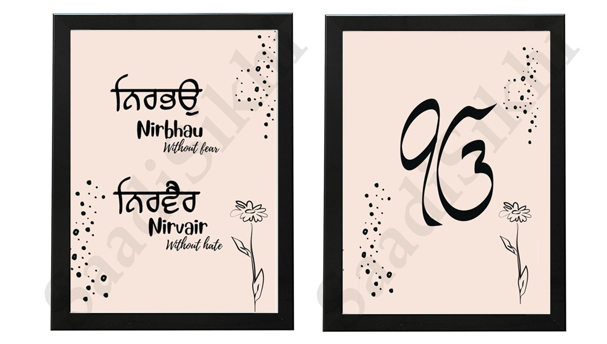 SaadiSikhi I SET OF 2 "Nirbhau Nirvair + IKonkar" - Wall Decor Prints For Home , Housewarming Gifts, Sikh Quotes I Sikh Gift Ideas I Premium Office Desk / Study Desk / Side Tables and Wall Gurbani Art Wall Frames I with Self Adhesive Hook